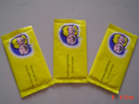 Unrolling packing film→ printing date on the film→ feeding the wet wipes into the formed bag →sealing the bag in the middle place → finishing the horizontal seals of the bag at both sides→ discharging finished products